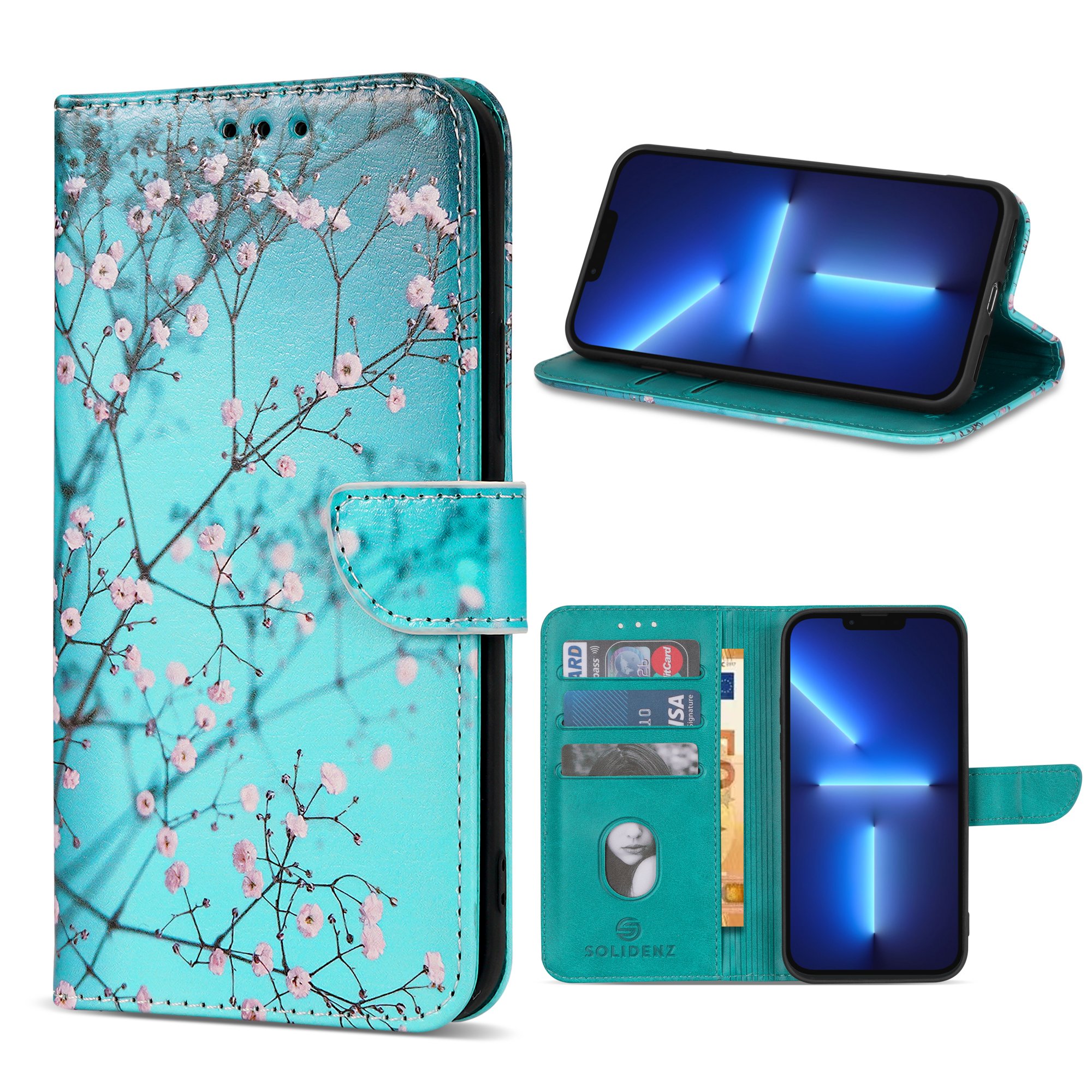 De cover waarin de smartphone in geplaatst wordt is gemaakt van schokbestendige siliconen wat ideaal is voor het verlenen van het best mogelijke protectie van de telefoon. De Solidenz telefoonhoes beschikt over 3 pasgleuven voor het veilig opbergen van de kaarten. Daarnaast kan achter de kaarten nog briefgeld gestopt worden in een aparte ruimte. De case sluit zich door middel van een magnetisch klepje waarmee de cover volledig wordt afgesloten. Let wel, bij het stoppen van teveel pasjes in de hoes werkt de magnetische sluiting minder goed. De telefoonhoes is verder eenvoudig op te vouwen tot een standaard voor het makkelijk neerzetten van de telefoon op een tafel. Bovendien zijn de uitsparingen handig ontworpen zodat na het opnemen van een telefoonoproep het mogelijk is om met een gesloten cover verder te bellen.