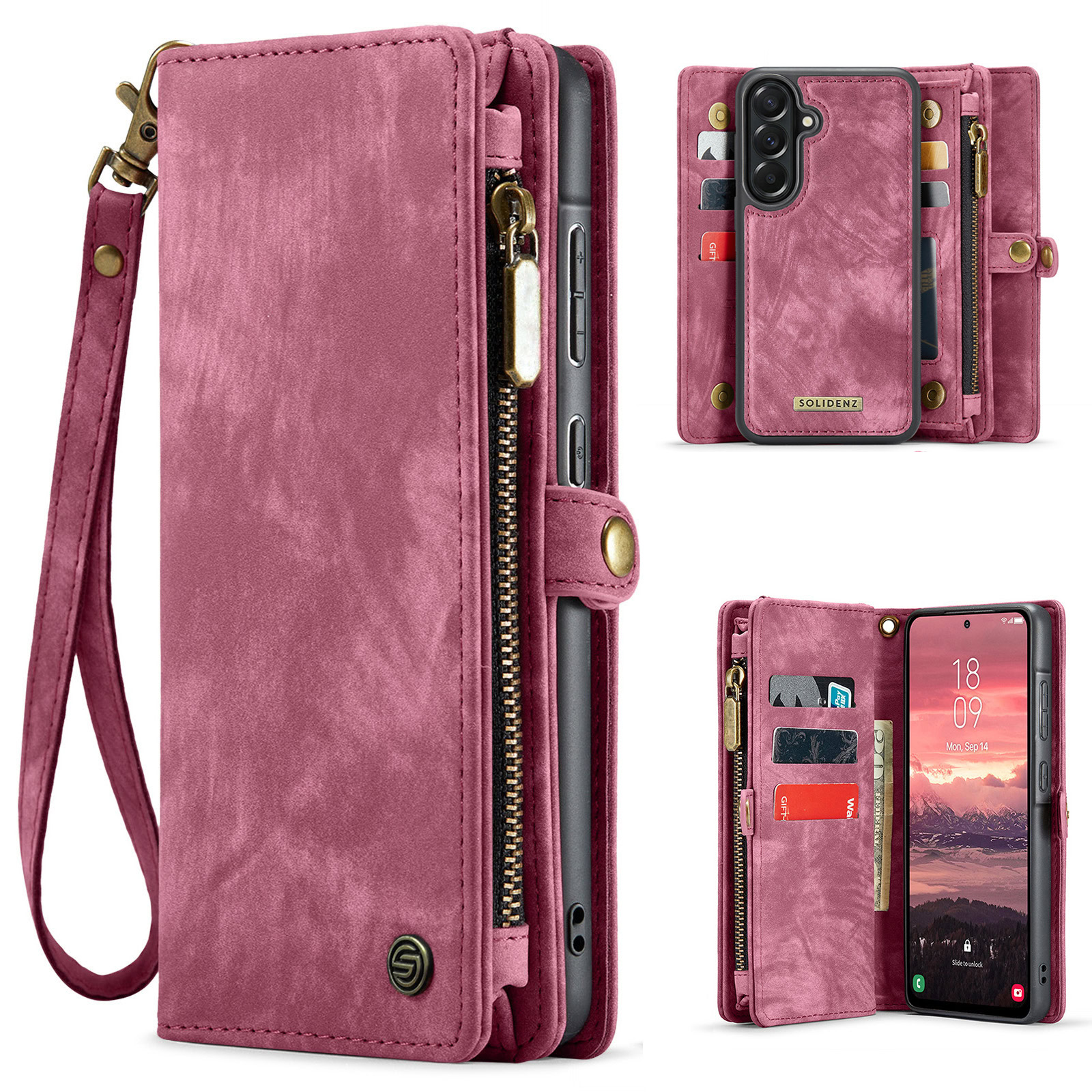 De Solidenz Urban Wallet beschikt over 8 pasgleuven voor het veilig opbergen van de kaarten. Bovendien beschik je over een aparte met rits afsluitbare ruimte voor brief- en muntgeld. De case heeft een kleine drukknop wat magnetisch is voor het volledig afsluiten van de telefooncover. De telefoonhoes is verder eenvoudig op te vouwen tot een standaard voor het makkelijk neerzetten van de telefoon op een tafel. Het hoesje is een 2in1 hoes, wat betekent dat de binnenkant magnetisch uit de hoes in en uithaalbaar is. Zo kun je de binnenste siliconen hoes uit de portemonnee halen voor bijvoorbeeld een autohouder of wanneer je een compactere hoes nodig hebt.
